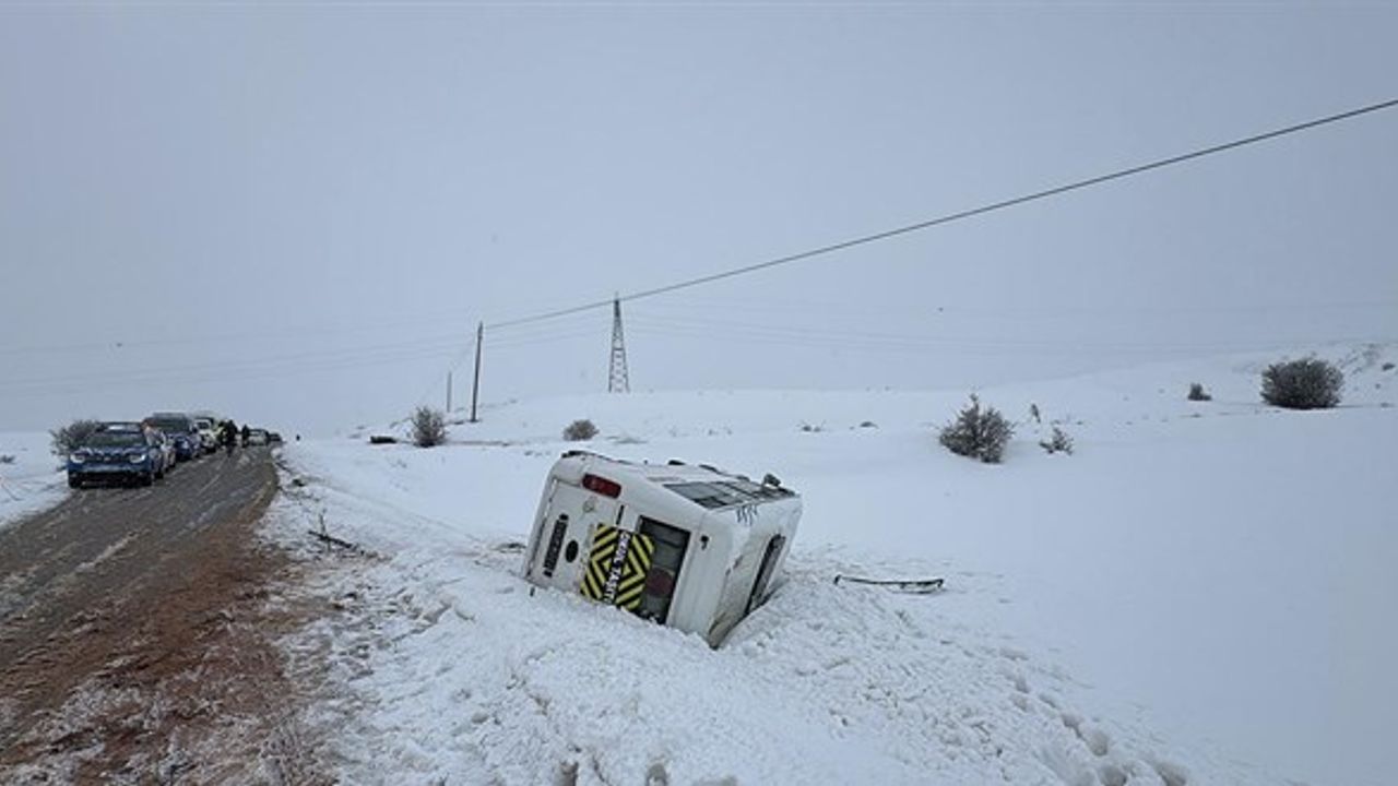 Sivas’ın Yıldızeli ilçesinde meydana gelen kar ve buzlanma nedeniyle bir öğrenci servisi devrildi ve kazada sürücü ile birlikte 9 öğrenci olmak üzere toplam 10 kişi yaralandı. Olumsuz hava koşullarının etkisiyle meydana gelen kaza, Yıldızeli ilçesine bağlı Güneykaya beldesi Kargın Mahallesi yakınlarında meydana geldi. Kar ve buzlanma nedeniyle kontrolü kaybeden öğrenci servisi devrildi.